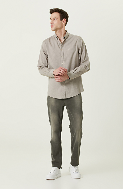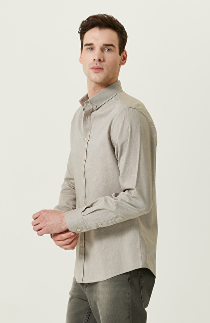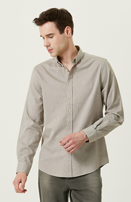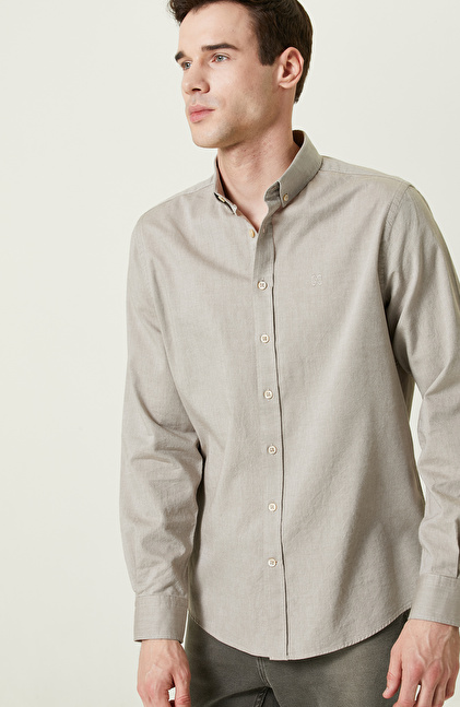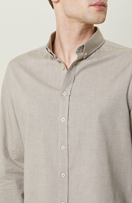 Pamuklu Bej Oxford Gömlek