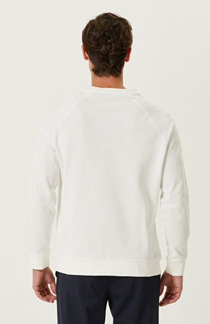 Pamuklu Ekru Pirinç Örgü Sweatshirt