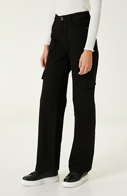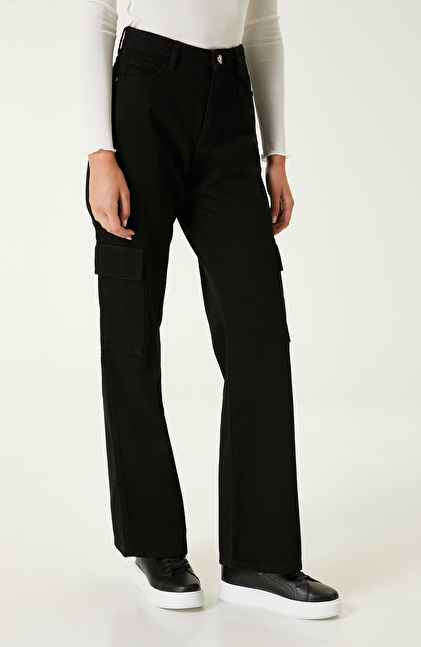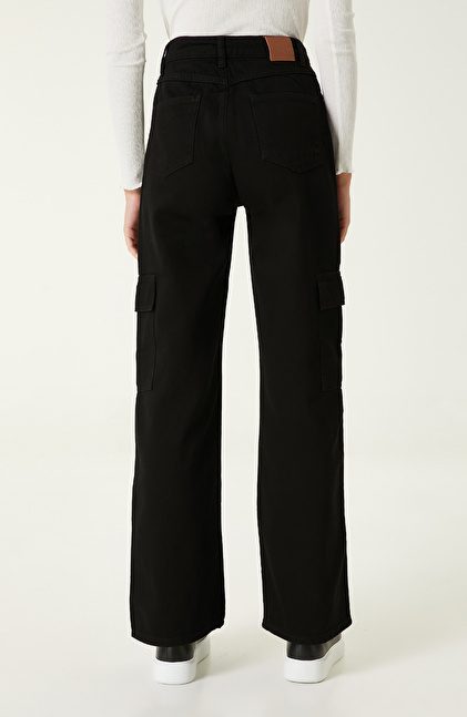 Relax Fit; Yüksek Bel; Kargo Cep Detaylı; Denim