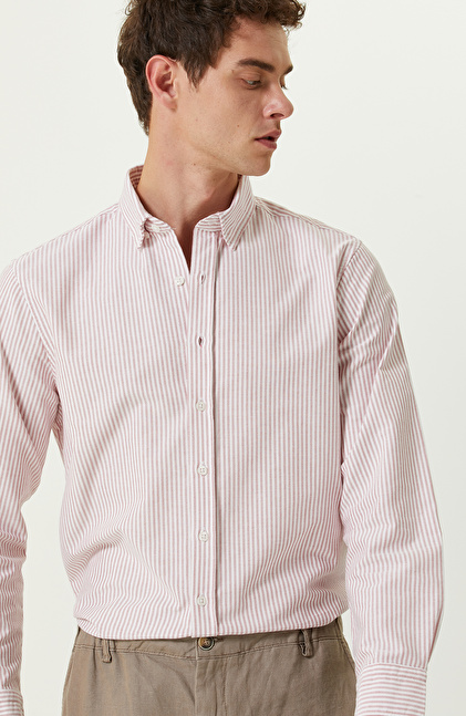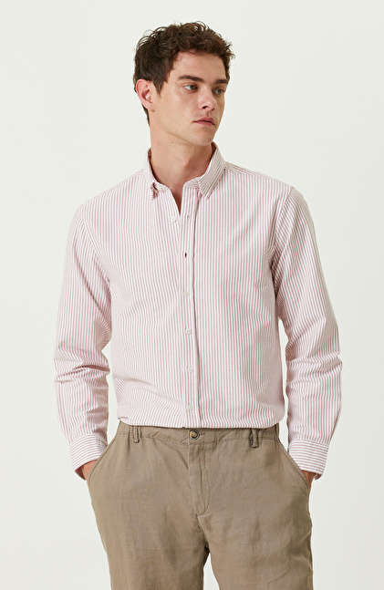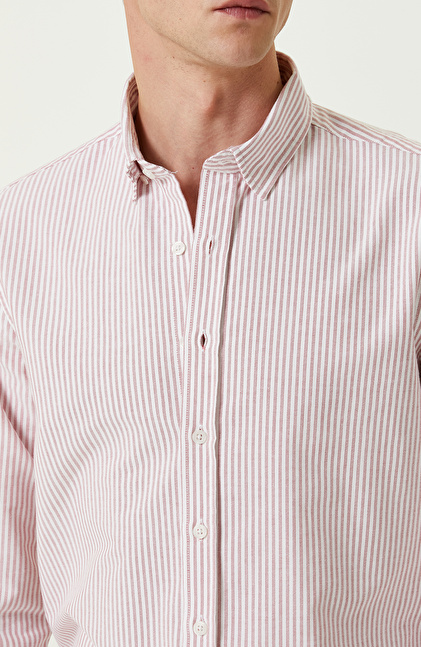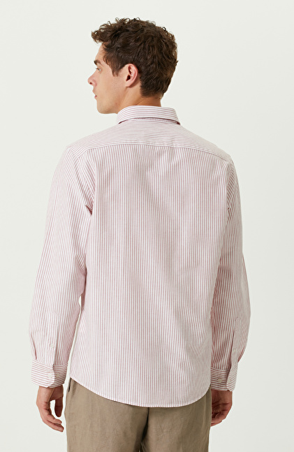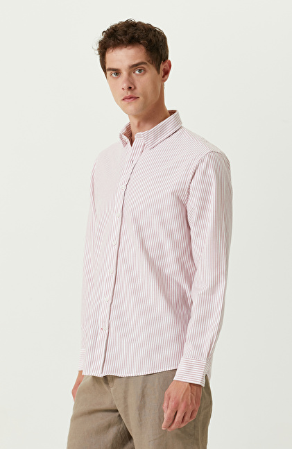 Pamuklu Kırmızı Beyaz Çizgili Gömlek