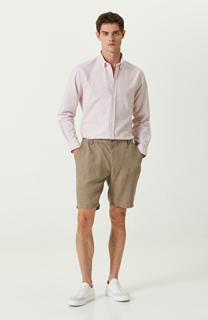 Şehirli erkeklerin yenilikçi stilini yansıtan Pamuklu Kırmızı Beyaz Çizgili Gömlek, yaz sezonunun önde gelen parçalarından biridir. NetWork’ün lüks ve yüksek performanslı ürünlerinin yer aldığı Casual koleksiyonuna aittir. Comfort fit formu ile rahat bir giyim deneyimi sunar. Üstün kaliteli kumaşı sayesinde konforlu ve ferah bir dokusu vardır. Tasarımı, üzerinde bulunan dikey çizgi desenleri ile şıklığını artırır. Siz de bu zamansız ve iddialı gömleği; bej düz paça jogger pantolon, beyaz sneaker ve taba deri kemer ile akıllıca bir araya getirebilir, dilerseniz, taba rengi deri bir bileklik ile kusursuz bir kombin elde edebilirsiniz.