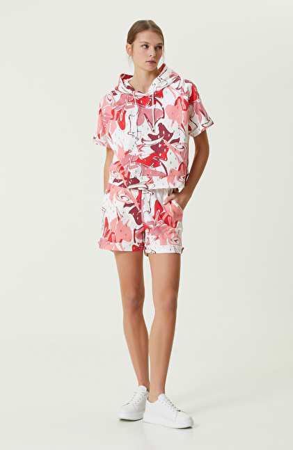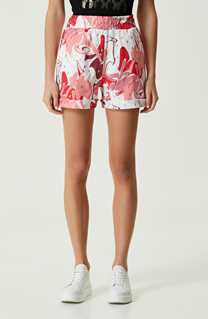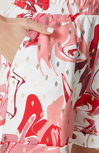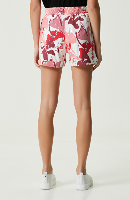 Pembe Beyaz Desenli Duble Paça Şort