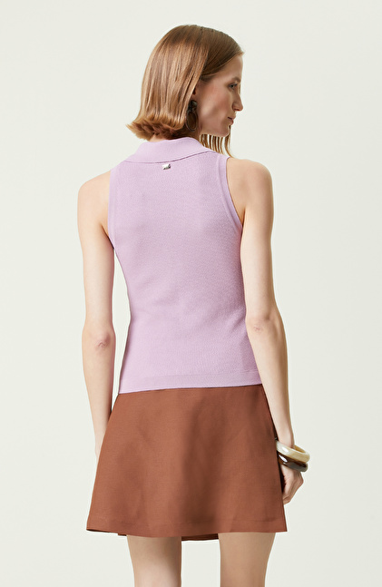 Pembe Gömlek Yaka Triko Kazak