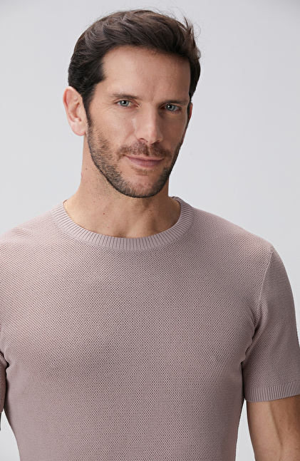 Pembe Jakarlı Triko Kazak
