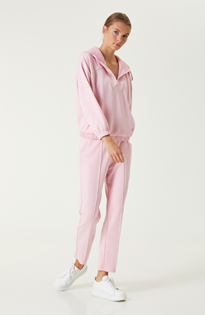 Oversize Fit; Kapüşon Yaka; Çıtçıt Ve Fermuar Detaylı Sweatshirt
