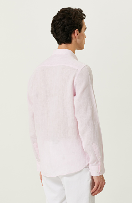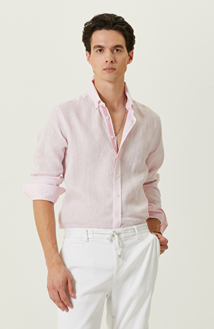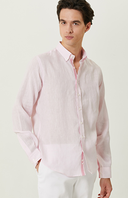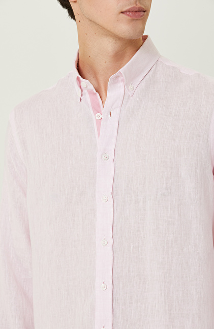 Pembe Uzun Kollu Keten Gömlek