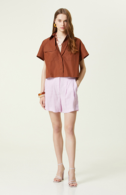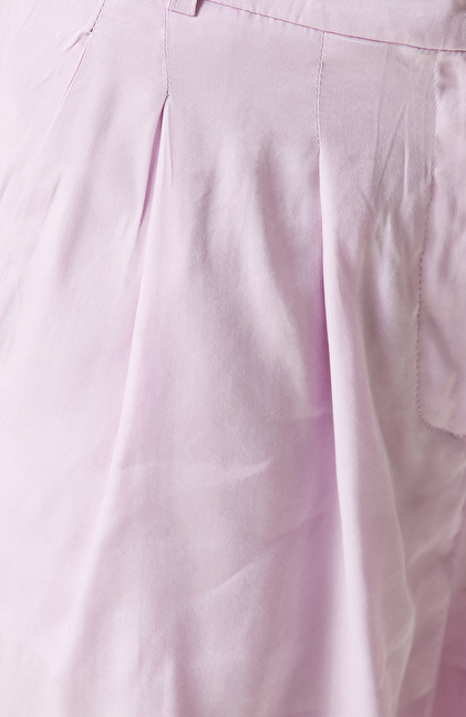 Açık rengi rengi ve cupro kumaşı ile dikkat çeken Pembe Yüksek Bel Bol Paça Şort, NetWork yaz koleksiyonunun en gözde parçalarından biridir. Lyocell karışımlı kumaşı, giyim konforlunun yanı sıra sürdürülebilirliği destekler ve doğaya katkı sağlar. Lyocell yenilenebilir ham maddeden üretilir ve aynı zamanda çevresel etkiler gözetilerek elde edilir. Yüksek bel şort bu sayede konforlu kombinleri tercih eden ve doğaya duyarlı kadınlara hitap eder. Pensli bel yapısı ise bol paçayla birleşerek ideal yaz görünümü oluşturmanıza yardımcı olur. Siz de cupro şortu lila topuklu sandalet ve lila triko atletle kombinleyebilir, daha dikkat çekici hale getirmek için fuşya akrilik takı ve çantalarla eşleştirebilirsiniz.