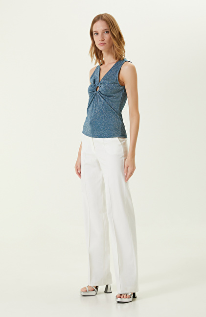 NetWork Color of Life serisinin özgün kış tasarımları arasında yer alan Petrol V Yaka Bluz, zamansız dizaynı sayesinde tüm moda trendlerine uyum sağlar. Çekici kombinler yapmayı seven kadınların tercihi bluz, V yaka ve küçük dekoltesiyle geceden gündüze giyilebilir. Aksesuarlarla hareketlendirilmesinin yanı sıra simli görünümü ile son derece dikkat çekici kombinler yapmanıza izin verir. Petrol rengi ise hem pek çok pastel/açık tonla uyumludur hem de gardırobunuza hareketlilik kazandırır. Slim fit kalıp ile tamamlandığından ceket gibi farklı üst giyim modelleriyle eşleşir. Petrol bluzu; fuşya etek, bej topuklu loafer, bej ceket ve altın renkli takılarla rahatlıkla kombinleyebilir, sizi yansıtan elegan görünümler elde edebilirsiniz.
