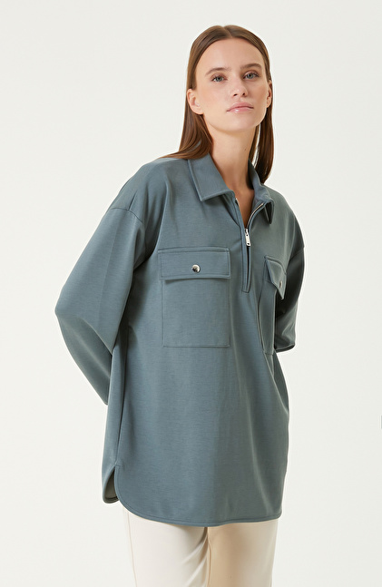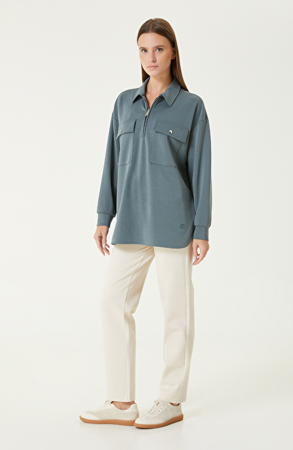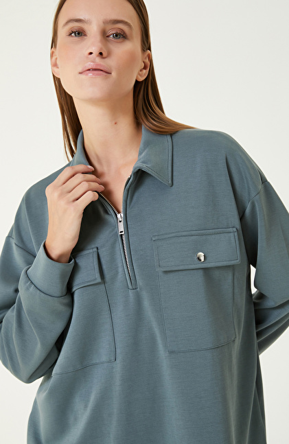 Petrol Yeşili Modal Karışımlı Sweatshırt