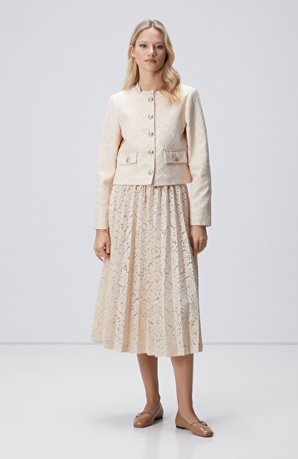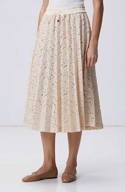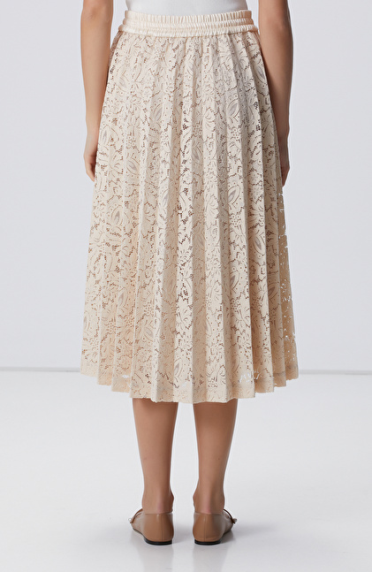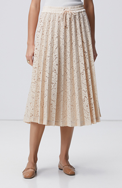 Pudra Rengi Limited Piliseli Dantel Midi Etek