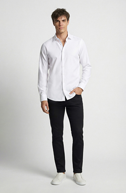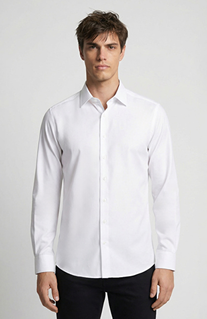 Regular Fit Beyaz Diyagonal Non-iron Gömlek