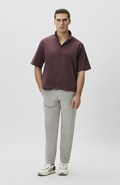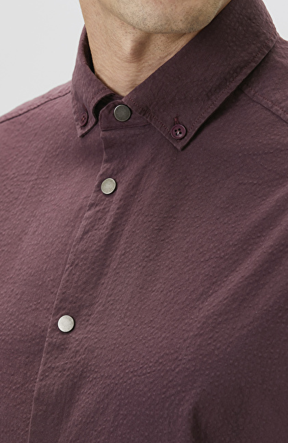 NETWORK Casual Relaxed Fit Bordo Etek Ucu Lastikli Gofreli Gömlek