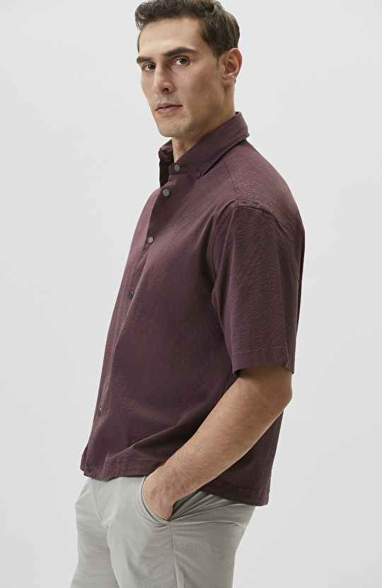 Relaxed Fit Bordo Etek Ucu Lastikli Gofreli Gömlek