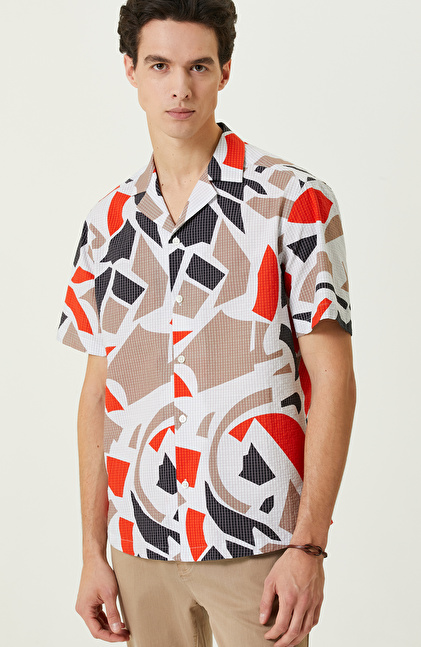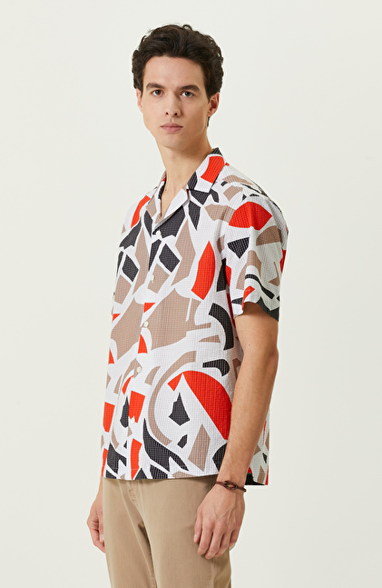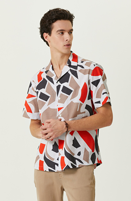 NETWORK Smart Casual Renkli Baskılı Apaş Yaka Gömlek