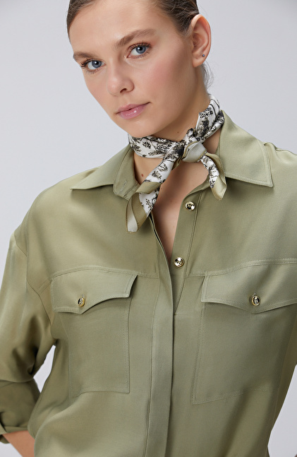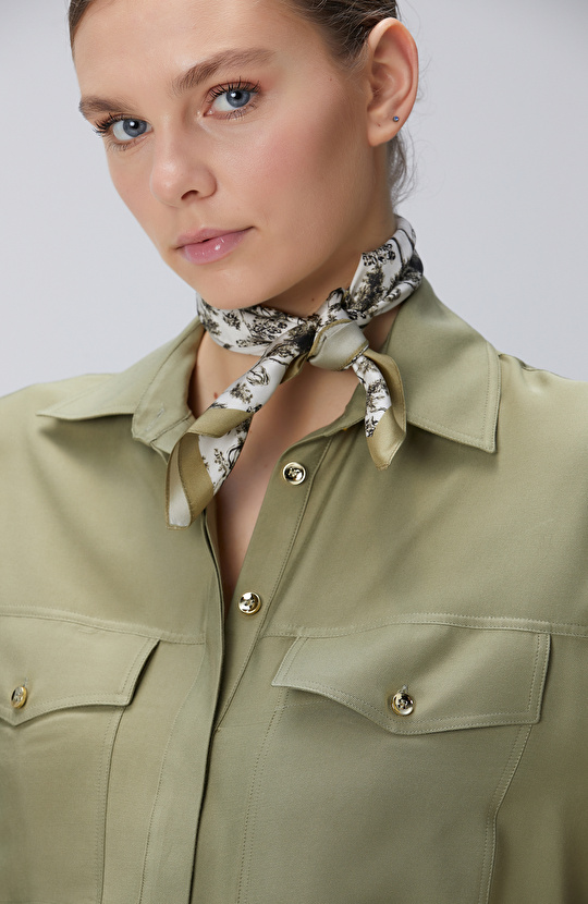 Renkli Yaprak Desenli Kadın Twill İpek Fular
