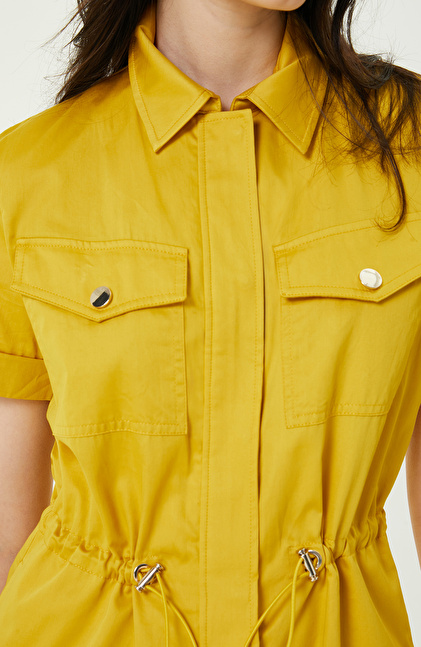NetWork Smart Casual koleksiyonunun Pigments serisinde öne çıkan Safran Rengi Kısa Kollu Mini Tulum, cesur ve ilham veren kadınlara hitap eder. Canlı safran rengiyle dikkat çekici görünüm sağlayan mini tulum nötr ve parlak renklerle eşleşerek birçok stilde kombinlenebilir. Belinde yer alan büzgü detayları ayarlanabilir olduğu için dar veya bol olarak kullanmanız mümkündür. Tulumun kapaklı tasarıma sahip ve işlevsel iki göğüs cebi mevcuttur. Bol paça ve dik yaka dizaynı ise klasik ve retro stile uygun parçalarla kombinlemenize yardımcı olur. Çok yönlü tulumu kahverengi deri sandalet, turkuaz postacı çanta, sarı güneş gözlüğü ve altın renkli takılarla kombinleyerek mükemmel yaz görünümleri elde edebilirsiniz.