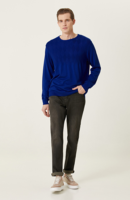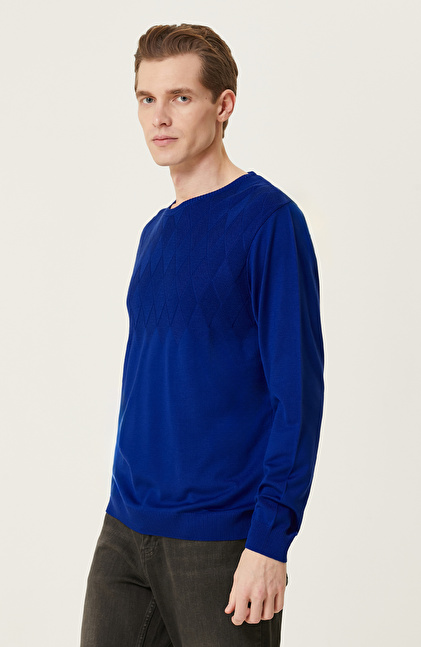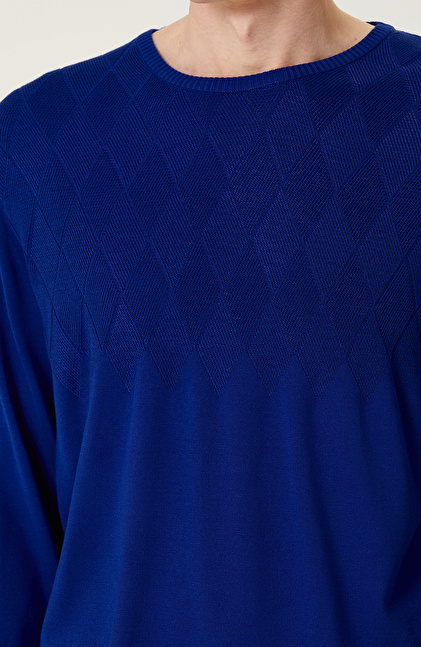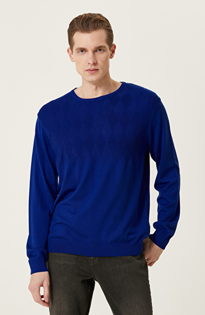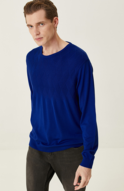 Slim Fit; Bisiklet Yaka; Uzun Kol; Baklava Desenli; Örme Kazak