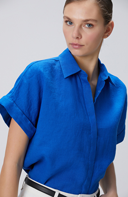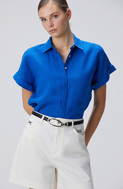 Basic Fit; Gömlek Yaka; Kısa Kol; Keten Gömlek