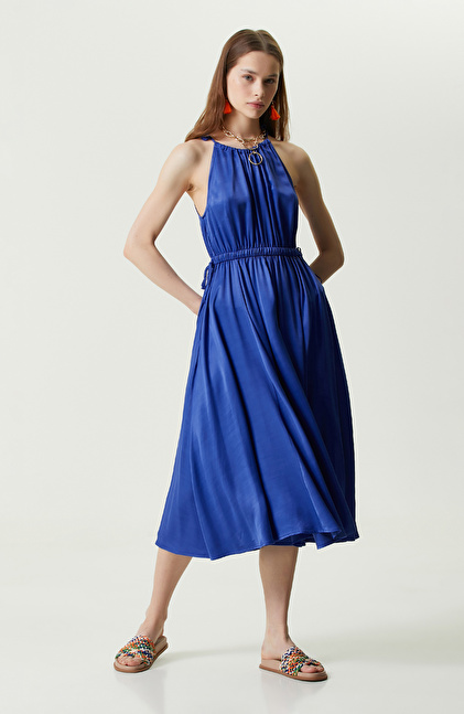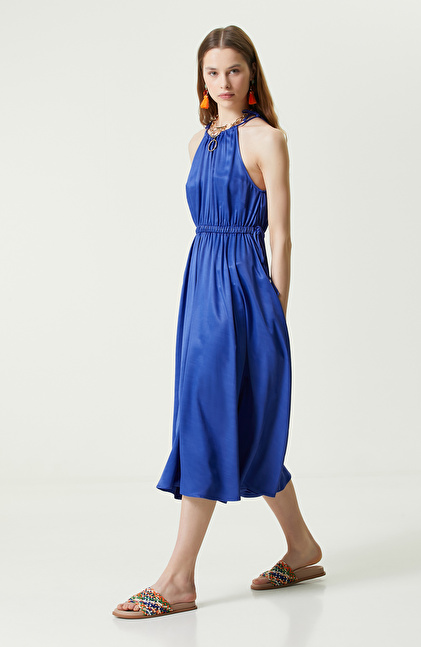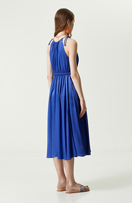 Saks Mavisi Askılı Triko Elbise