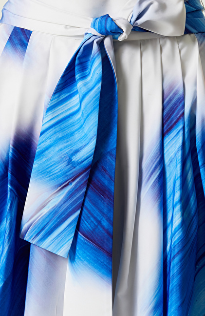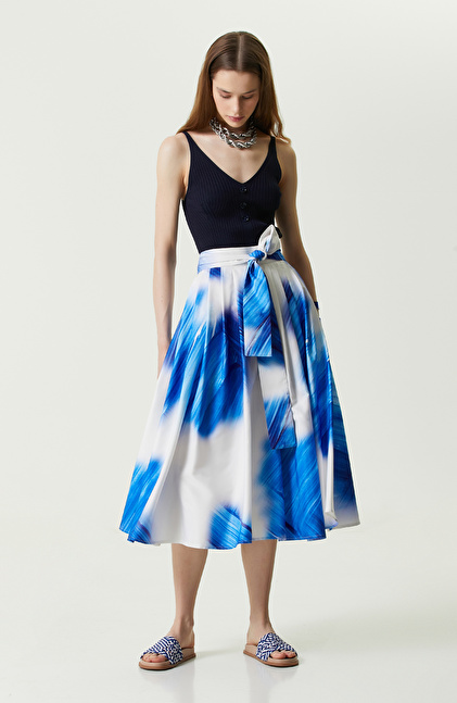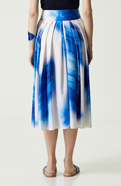 Saks Mavisi Desenli Tafta Etek