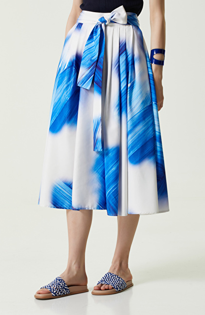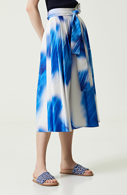 NETWORK Smart Casual Saks Mavisi Desenli Tafta Etek