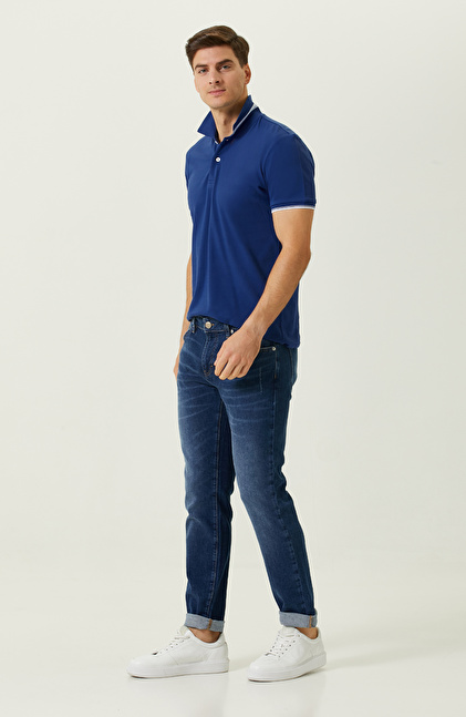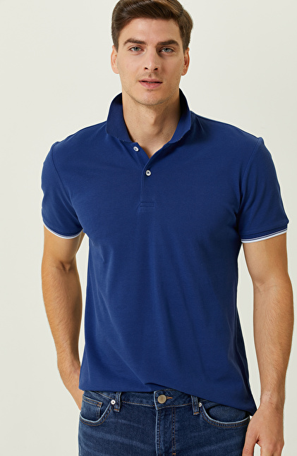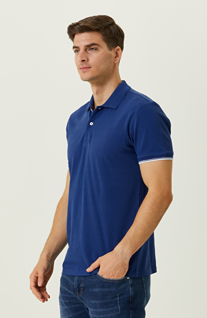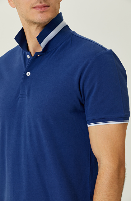 Saks Mavisi Garnili Polo Yaka T-Shirt