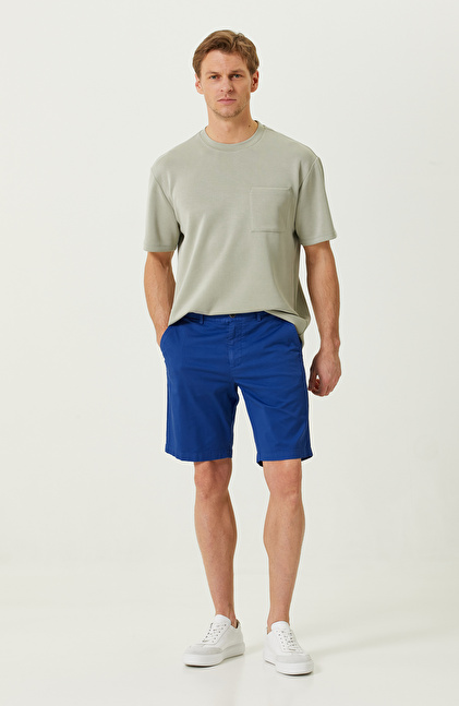 NetWork'ün Smart Casual tasarımları arasında yer alan Saks Mavisi Slim Fit Şort, trendleri stiline uyarlamayı seven ve görünümüne her zaman özen gösteren erkeklerin tercihidir. Düz paça kesimi ile klasik görünüm sağlayan şort, slim fit kalıbı sayesinde ilkbahar/yaz zamanlarında şık kombinlere imza atamanıza izin verir. Saks mavisi rengiyle oldukça dikkat çekicidir ve sade kıyafetlerinize hareketlilik kazandırır. Her iki yanda bulunan ceplere ek olarak düğmeli arka cepler de bulunur. Arka cep detayının üzerinde ise NetWork logolu aksesuar yer alır. Diz boyu şortu, casual stilde kombinlemek için kısa kollu ekru keten gömlek, bej loafer ve spor stilde kol saatlerini tercih edebilirsiniz.