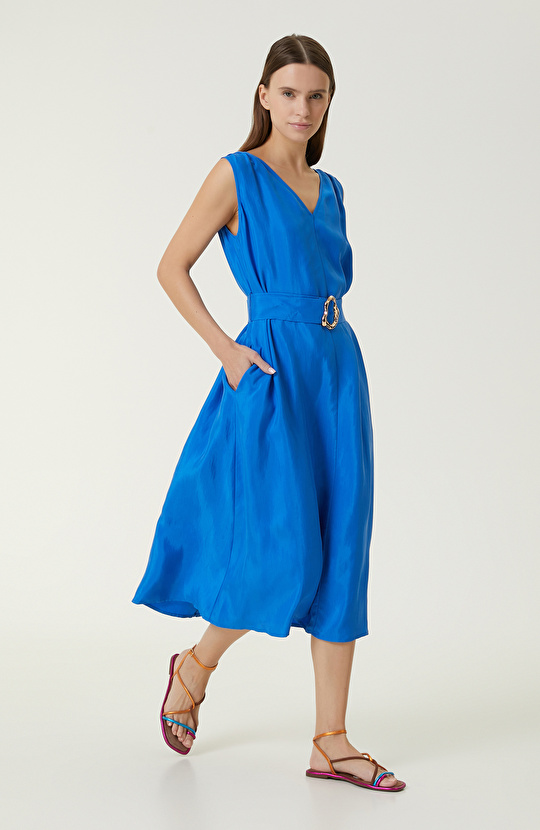 Regular Fit; V Yaka; Kemerli; Mid Boy Elbise