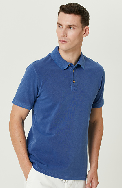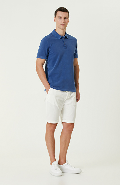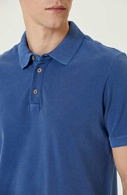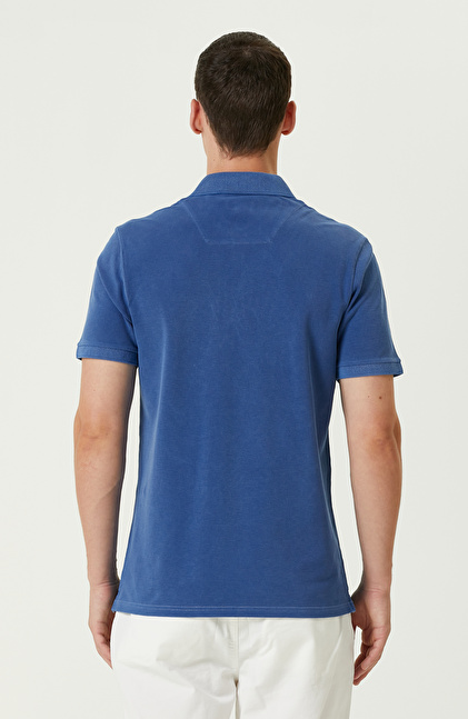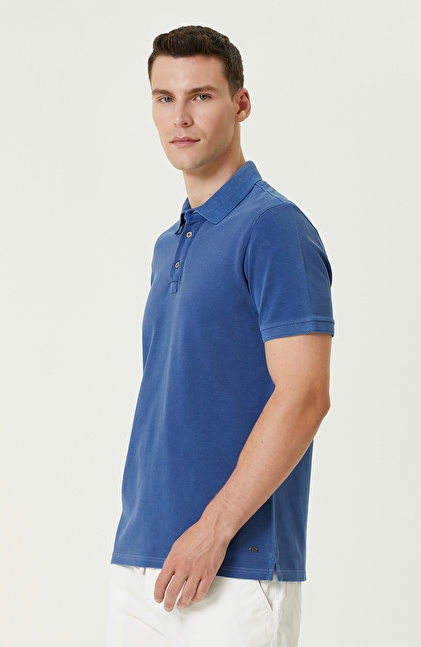 Slim Fit. Polo Yaka; Kısa Kol; Parça Boya T-shirt