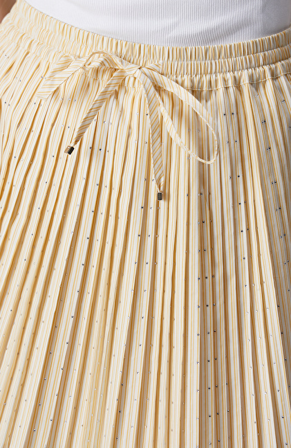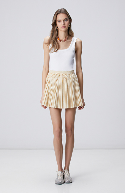Sarı Beyaz Taşlı Piliseli Mini Etek