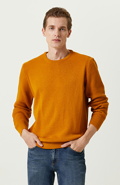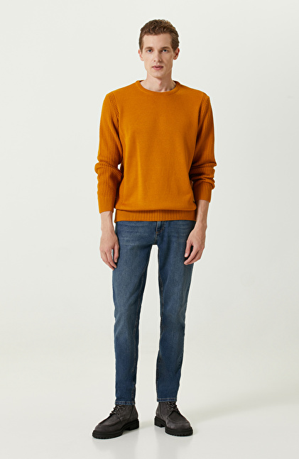 Bisiklet Yaka; Slim Fit; Uzun Kollu; Jakarlı; Triko