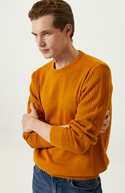 Özenle tasarlanan stili ve kusursuz şıklığı yansıtan NetWork, Sarı Bisiklet Yaka Kazak ile çağdaş erkeklerin kış gardıroplarına dinamik bir tarz ekler. Premium hissiyatı olan pamuklu tasarım, soğuk günler boyunca rahatlığı ve modayı yakalamanızı sağlar. Bisiklet yaka ve uzun kollu kazak, zamansız detayları sayesinde rahatlıkla tercih edebileceğiniz bir seçenek olur. Kazağın slim fit kesimi klasik çizgilere modern dokunuşlar katar. Tasarımın jakarlı detayları ise akıllı-şık kış stiline hareket eklemek için idealdir. Siz de sarı kazağı; taşlanmış mavi jean pantolon ve füme tonlarda bağcıklı botlarla giyerek hem şık hem de konforlu görünmenin keyfini çıkarabilirsiniz.