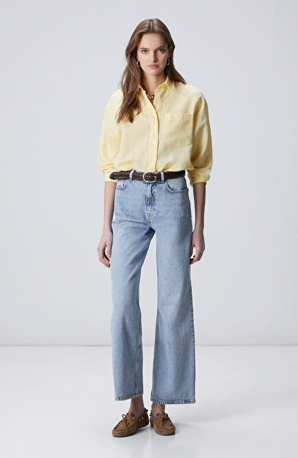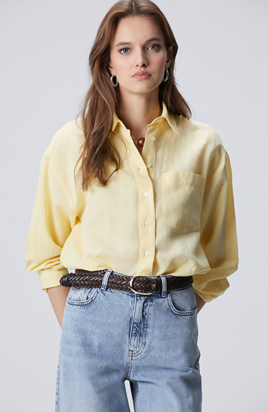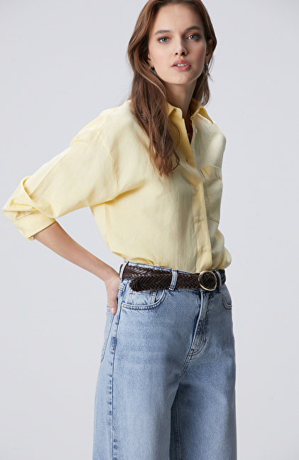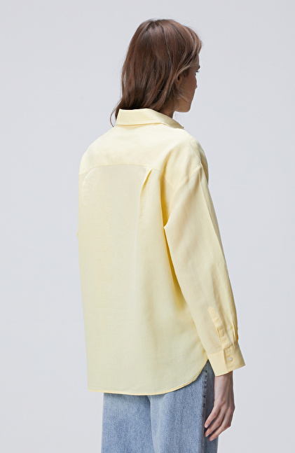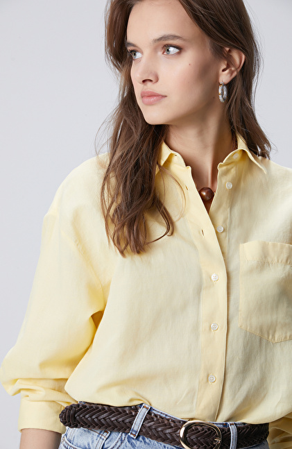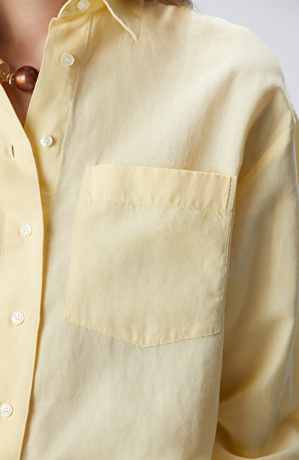 Sarı Cep Detaylı Basic Keten Karışımlı Gömlek