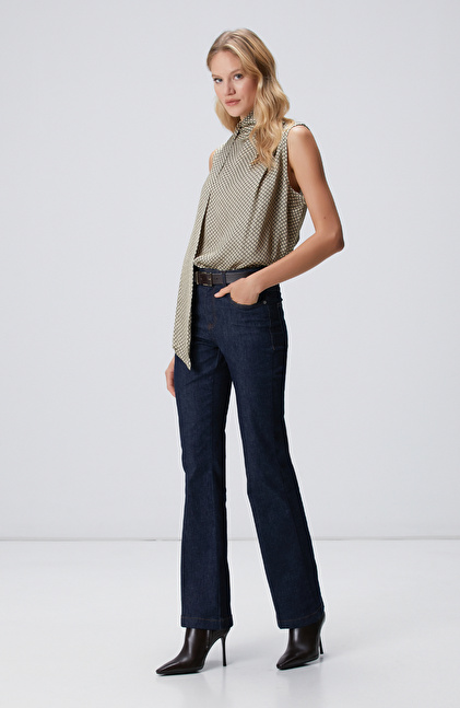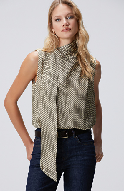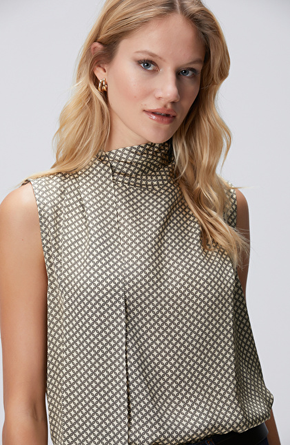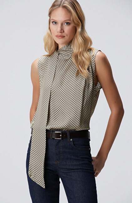 Regular Fit; Dik Yaka; Kolsuz; Desenli Bluz