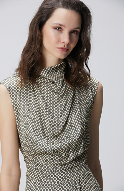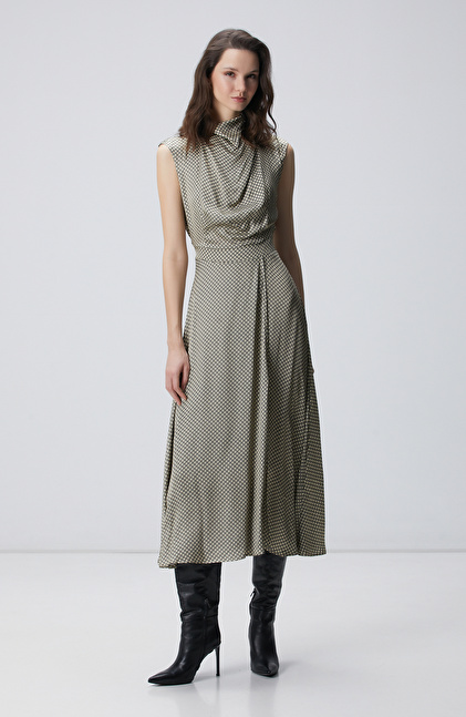 Sarı Desenli Midi Elbise