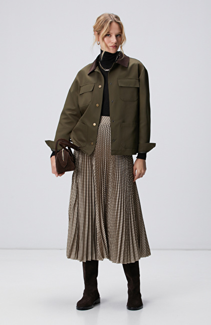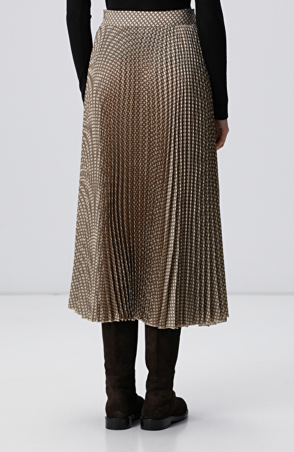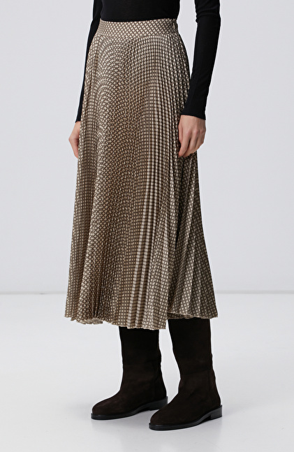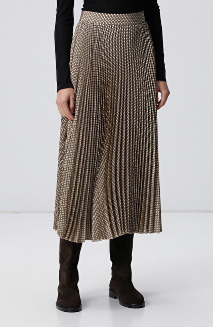 Yüksek bel; Cepsiz; Pilise desenli; Midi etek