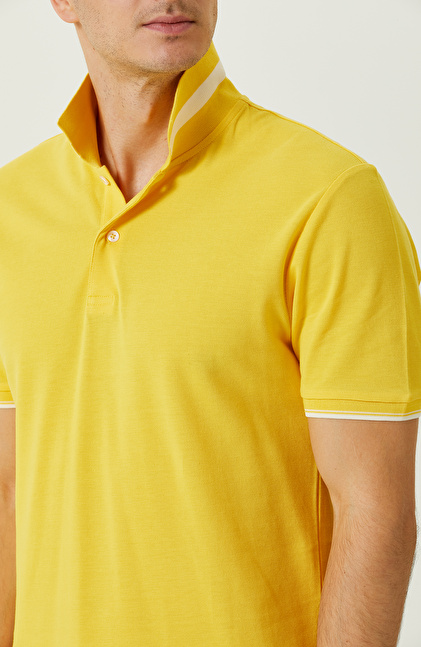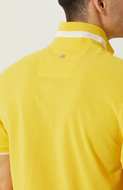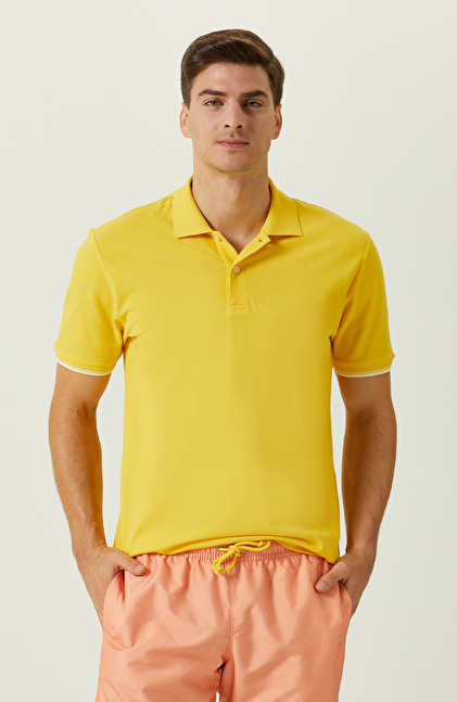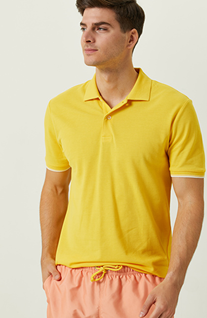 Trendleri stiline uyarlamayı seven erkeklerin tercih Sarı Polo Yaka Garnili T-shirt, parlak sarı rengi sayesinde yaz aylarında enerjik kombinler hazırlamanızı sağlar. Polo yaka detayı ile klasik görünüm sunan t-shirt, yakasında yer alan beyaz çizgi sayesinde modern stillerde de kombinlenebilir. Slim fit kalıba sahip garnili t-shirt'ü ofis ve gündelik görünümlerinizde rahatlıkla tercih edebilirsiniz. NetWork’ün Smart Casual koleksiyonunda yer alan parça, yaz aylarında ferah kalmanızı sağlarken aynı zamanda spor ceket kombinlerine dahil edilerek bahar görünümleri elde etmenize de olanak tanır. Gardıroplarınızda anahtar parça olarak kullanabileceğiniz şık t-shirt'ü beyaz keten şort, vizon tekne ayakkabısı, kahverengi güneş gözlüğü ile eşleştirebilirsiniz.