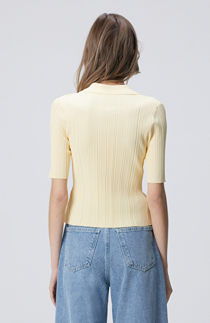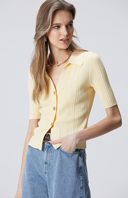 Sarı Polo Yaka Kısa Kol Triko Hırka