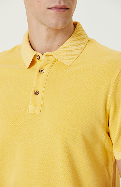 Slim Fit. Polo Yaka; Kısa Kol; Parça Boya T-shirt