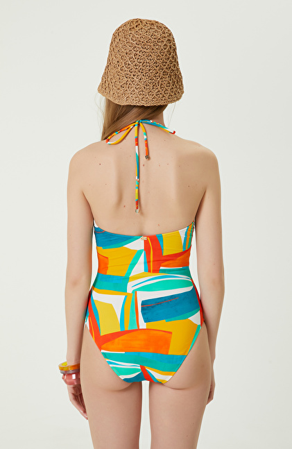 Sarı Yeşil Geometrik Desenli Renkli Mayo
