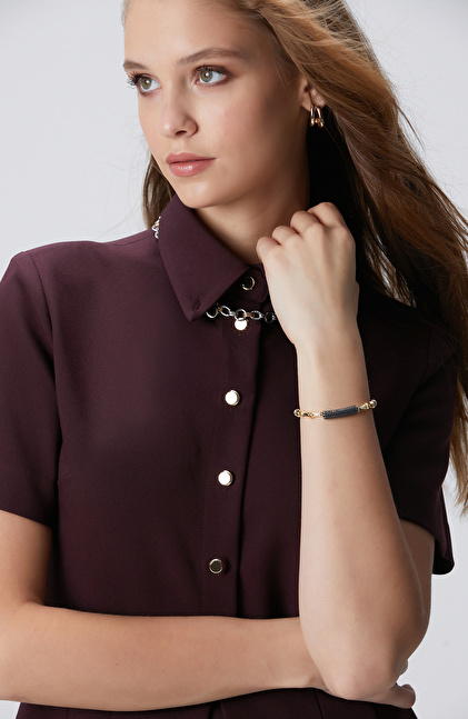 Silver Gold Doğal Taşlı Kadın Bileklik