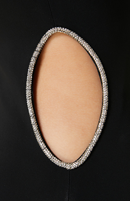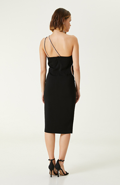 Slim Fit; Tek Omuz Yaka; Diz Boy; Dokuma Abiye Elbise; Belde Pencere Detaylı; Aksesuarlı