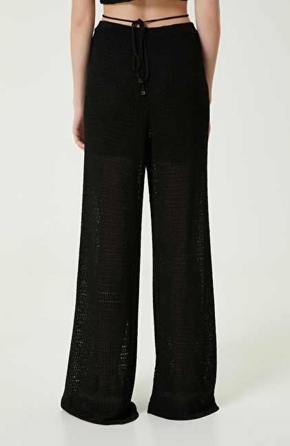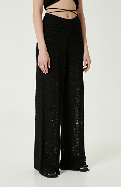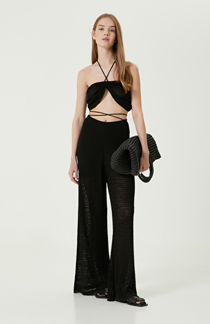 NetWork'ün Beach Wear koleksiyonu için tasarladığı Siyah Ajurlu Triko Plaj Pantolonu, özgüveni yüksek ve iddialı kadınlara hitap eden lüks parçalardan biridir. Ajurlu kumaşı yaz kombinlerine ilham verir ve ferah kalmanıza yardımcı olur. Klasik ve modern kombinlere uyum sağlayan pantolon transparan görünümü sayesinde bikini ve mayolarınıza lüks bir dokunuş ekler. Normal bel yüksekliği ve bol paça tasarımı şık görünümünüzü destekler ve plajda keyifli zaman geçirmenizi sağlar. Trikonun esnekliği sayesinde her an rahat hissetmenize olanak tanıyan pantolon, siyah rengiyle her bikini modeliyle kombinlenebilir. Siz de plaj pantolonunu kırmızı bikini takımı, beyaz deri terlik, hasır çanta ve şapkalarla kombinleyebilirsiniz.