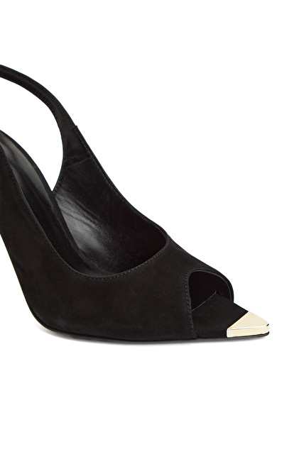 Siyah Aksesuar Detaylı Kadın Deri Sandalet
