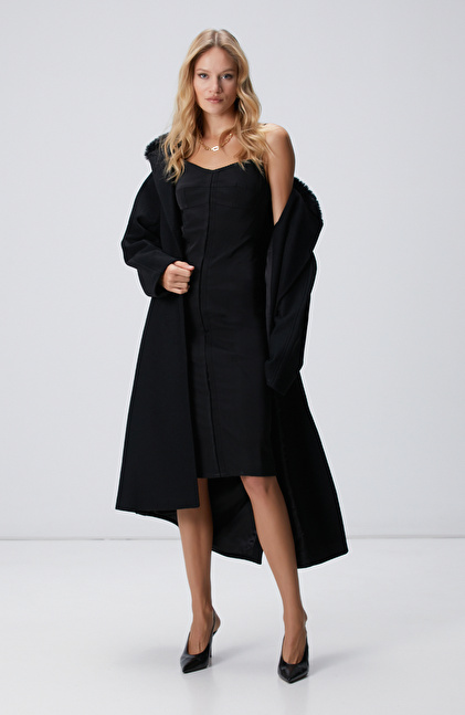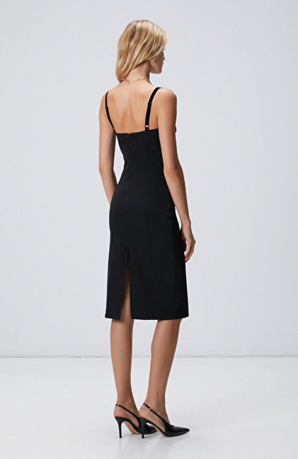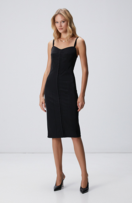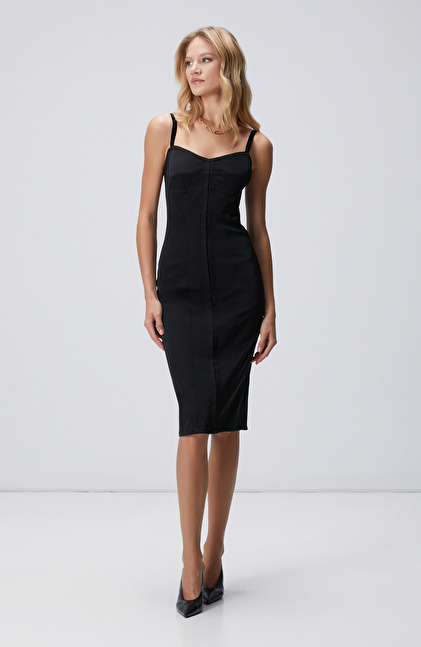 Siyah Askılı Midi Korse Elbise