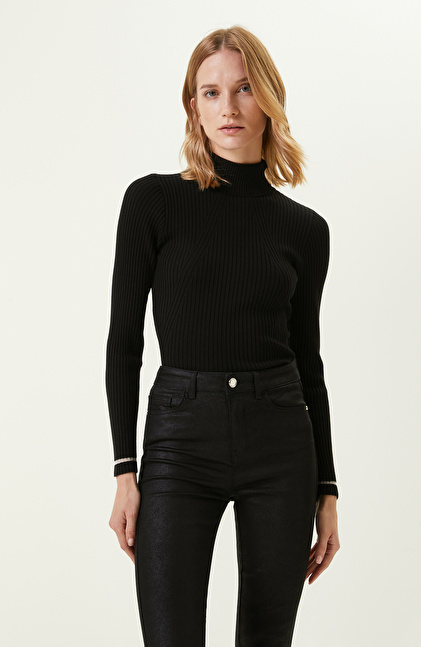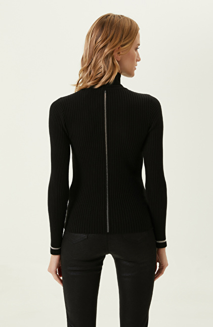 Siyah Balıkçı Yaka Selofanlı Triko Kazak