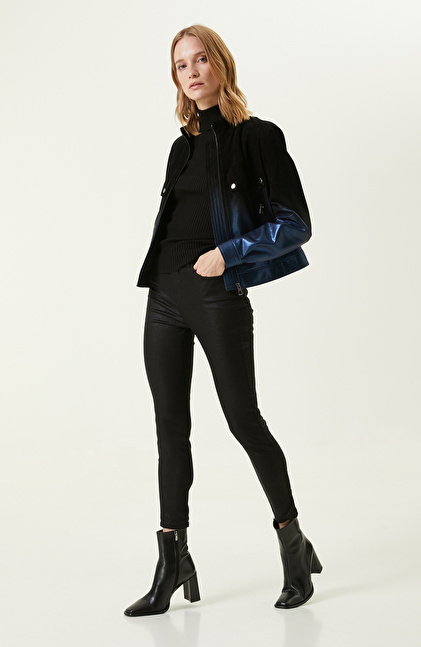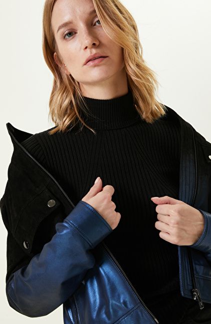 Kadın sonbahar/kış sezonun eşsiz parçalarından olan Siyah Balıkçı Yaka Selofanlı Triko Kazak, NetWork’ün lüks ve yenilikçi moda anlayışını vurgular. Balıkçı yaka ve uzun kol detayları ile zenginleşen parçanın kalıbı slim fittir. Sofistike ve entelektüel kadına hitap eden model, viskon karışımlı üst segment kalitede kumaşlar ile elde edilir. Soğuk havalarda kullanıma uygun olan özgün tasarım, selofanlı detaylarıyla şıklığını gözler önüne serer. NetWork Smart Casual koleksiyonuna dahil olan model, ofis ve günlük yaşam stiline uygundur. Uzun kol balıkçı yaka selofanlı trikoyu; siyah pantolon, siyah deri topuklu bot, siyah omuz çantası ve lacivert deri ceketle kullanarak ilham verici bir kombin oluşturabilirsiniz.