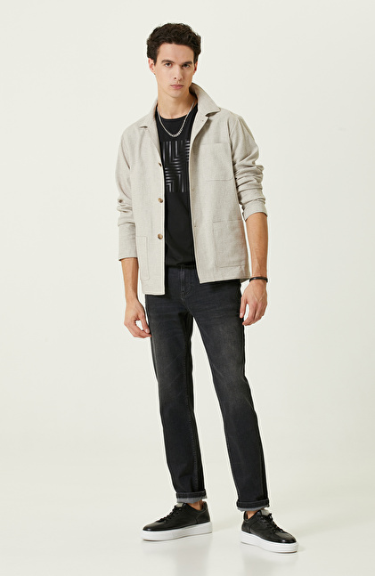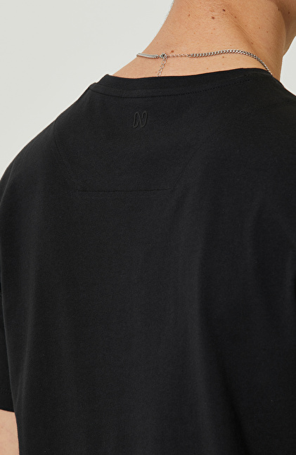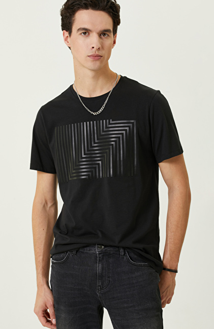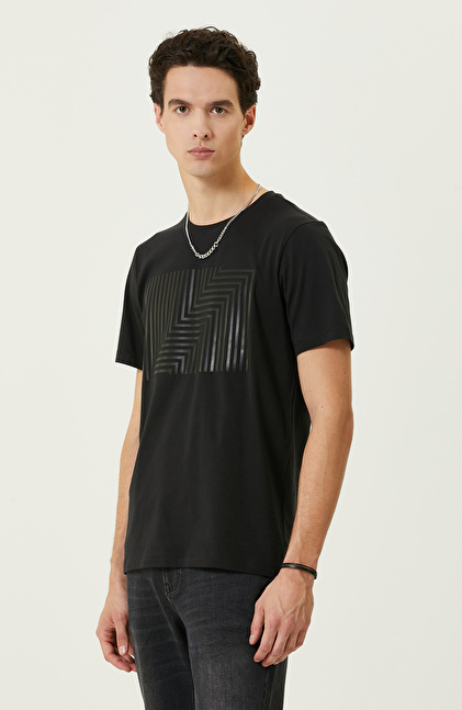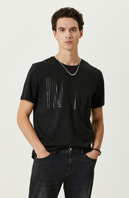 NETWORK Casual Siyah Baskılı Bisiklet Yaka T-Shirt