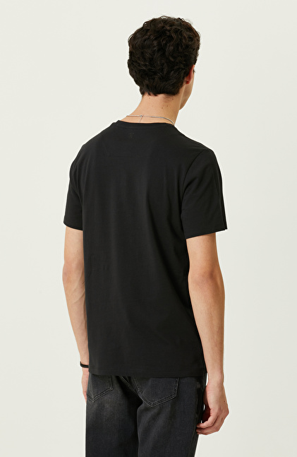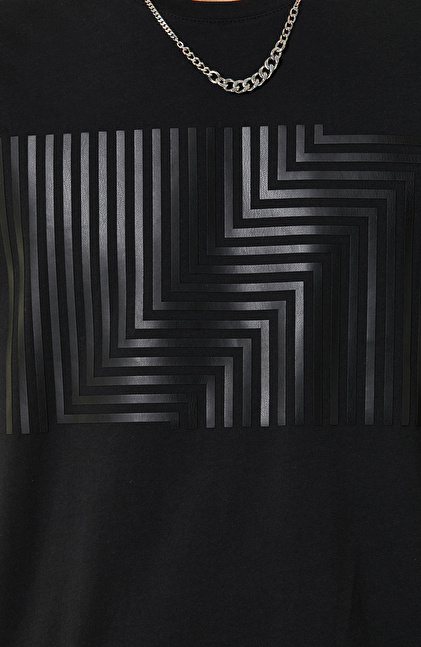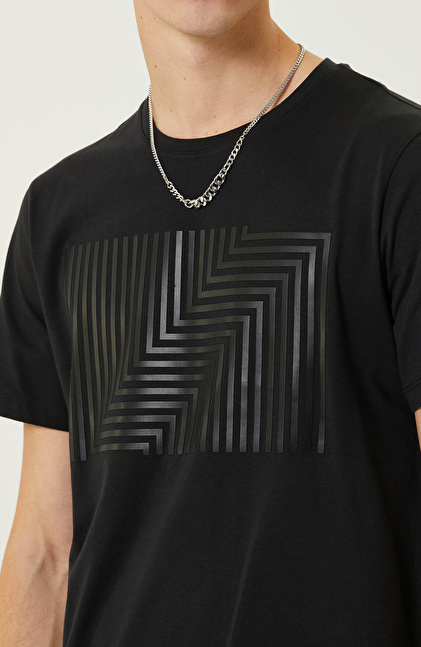 Siyah Baskılı Bisiklet Yaka T-Shirt