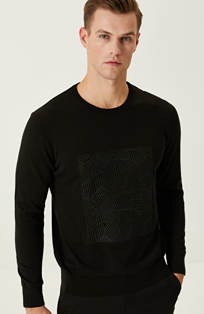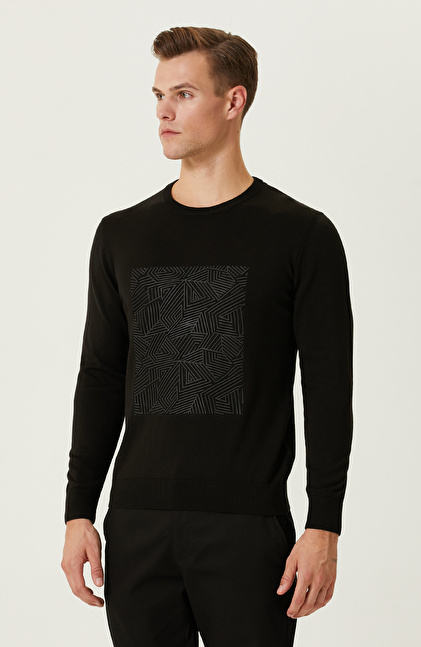 NETWORK Siyah Baskılı Kazak